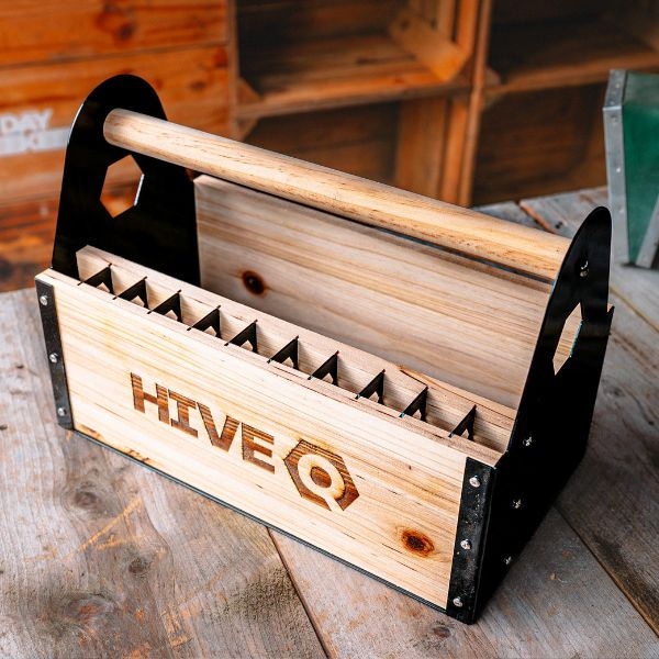 The Hive Q Caddy is a premium, purpose built apiary organiser designed to keep all your tools in one place while you work through a hive inspection. Solid, durable and beautifully made, it helps you stay efficient, tidy and focused at the hive. It is the perfect companion for beekeepers who want professional-level organisation in the apiary.